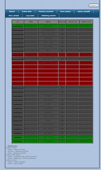Monitorovací systém počítačové sítě s využitím registrace pro správu a přístup k internetu. Obecně se jedná o zjednodušený captive portál, s okamžitým stavem zařízení(povoleno, zakázáno, aktivní, neaktivní,...).